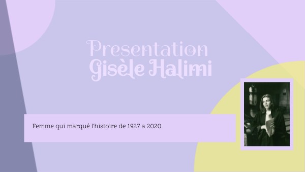 Gisèle Halimi ( 1927-2020 ), née à Zeiza Taieb en Tunisie était une avocate, écrivaine et militante féministe. Elle s'est engagée très tôt pour lajustice et l'égalité, notamment en défendant des militants anticoloniaux pendnant la guerre d'Algérie. Elle est devenue une figure majeure du combats pour les droits des femmes en France, surtout grâce à son rôle dans le procès de Bobigny en 1972, qu a constitué à la législation de l'avortement. Elle a aussi été députée et ambassadrice a L'UNESCO, consacrant sa vie à la défense des libertés et des droits humains.