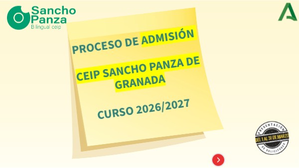 PROCESO DE ADMISIÓN CEIP SANCHO PANZA DE GRANADA CURSO 2026/2027