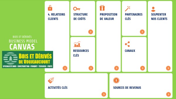 1. Fournisseurs de bois et matériaux / Rôle : Assurer un approvisionnement régulier en matériaux de qualité et à des prix compétitifs. /Exemple concret : Essences variées pour charpente, mobilier, revêtement intérieur.2. Partenaires du réseau Gedibois / Rôle : Partage des bonnes pratiques, accès à des stocks étendus, soutien logistique et commercial. 3. Artisans et entreprises locales / Rôle : Fournir un flux constant de clients professionnels, participer à des projets collaboratifs. 4. Prestataires de transport et logistique/Rôle : Assurer la livraison rapide et sécurisée des matériaux sur chantier ou chez les clients. 5. Partenaires techniques et fournisseurs d’équipements/ Rôle : Maintenir l’efficacité de l’atelier et la qualité des services sur mesure. 6. Partenaires financiers et institutionnels /Rôle : Soutien financier et assurance contre les risques.