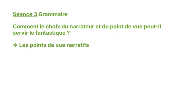 Séance 3 Grammaire Comment le choix du narrateur et du point de vue peut-il servir le fantastique ? => Les points de vue narratifs