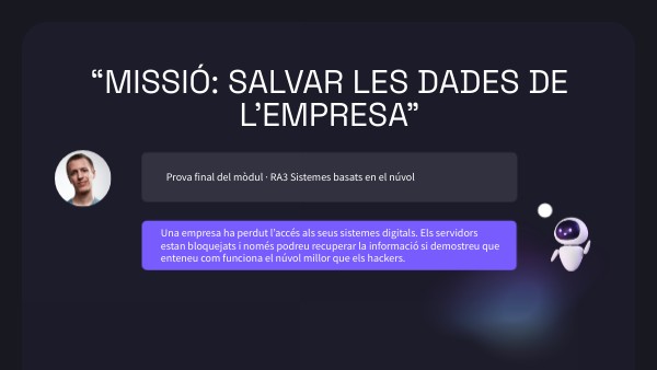 Una empresa ha perdut l’accés als seus sistemes digitals. Els servidors estan bloquejats i només podreu recuperar la informació si demostreu que enteneu com funciona el núvol millor que els hackers.