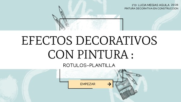 En este trabajo he elegido el acabado de rótulo, que consiste en la realización de dibujos o motivos decorativos sobre una superficie mediante el uso de plantillas. Este tipo de acabado se utiliza principalmente con fines decorativos y es habitual en trabajos de decoración de interiores.