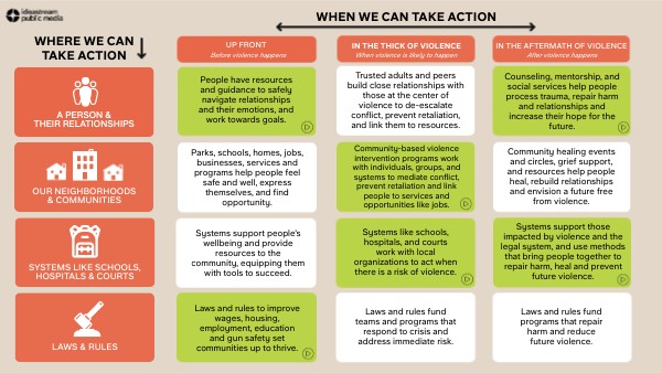 Community-based violence intervention programs work with individuals, groups, and systems to mediate conflict, prevent retaliation and link people to services and opportunities like jobs.