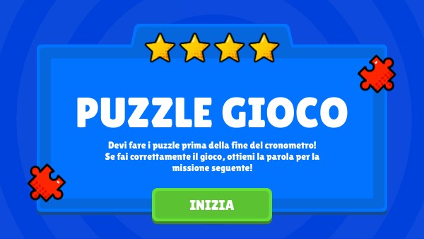 Devi fare i puzzle prima della fine del cronometro! Se fai correttamente il gioco, ottieni la parola per la missione seguente!