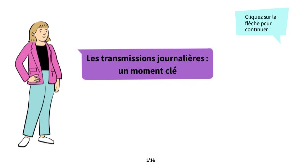 Les transmissions journalières sont un moment-clé. Il s’agit d’un temps de communication et de collaboration essentiel, qui assure la continuité éducative et le bien-être de l’enfant, tout en renforçant le lien de confiance avec les familles et la cohésion de l’équipe.