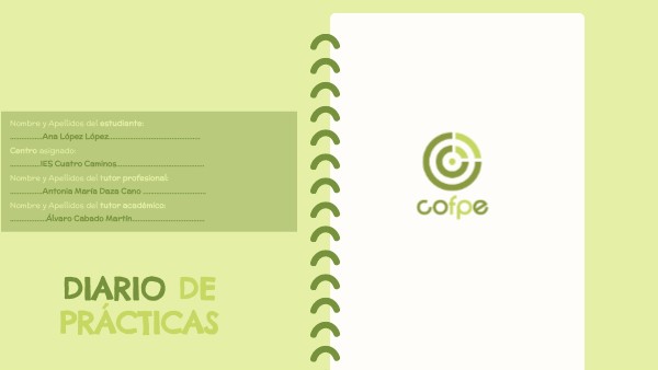 Nombre y Apellidos del estudiante: .................Ana López López................................................Centro asignado:................IES Cuatro Caminos..............................................Nombre y Apellidos del tutor profesional: .................Antonia María Daza Cano ................................. Nombre y Apellidos del tutor académico:...................Álvaro Cabado Martín......................................