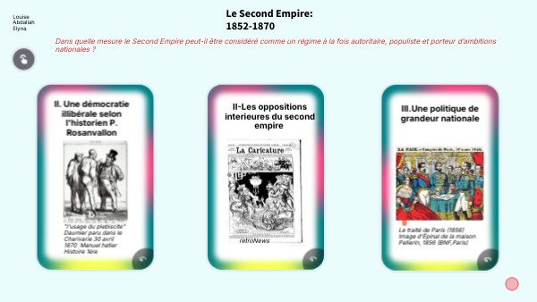 Le Second Empire peut donc être considéré comme un régime à la fois autoritaire, populiste et porteur d’ambitions nationales. En effet, Napoléon III met en place un pouvoir personnel fort, limitant les libertés politiques et contrôlant la presse et les oppositions. Cependant, il cherche aussi à obtenir le soutien du peuple en s’appuyant sur le suffrage universel et sur des plébiscites, ce qui donne au régime une dimension populiste. Enfin, le Second Empire est marqué par de grandes ambitions nationales, notamment à travers une politique de modernisation économique et urbaine ainsi qu’une politique extérieure active visant à renforcer le prestige de la France en Europe. Ainsi, le régime de Napoléon III apparaît comme complexe, mêlant autorité, appel au peuple et volonté de grandeur nationale.
