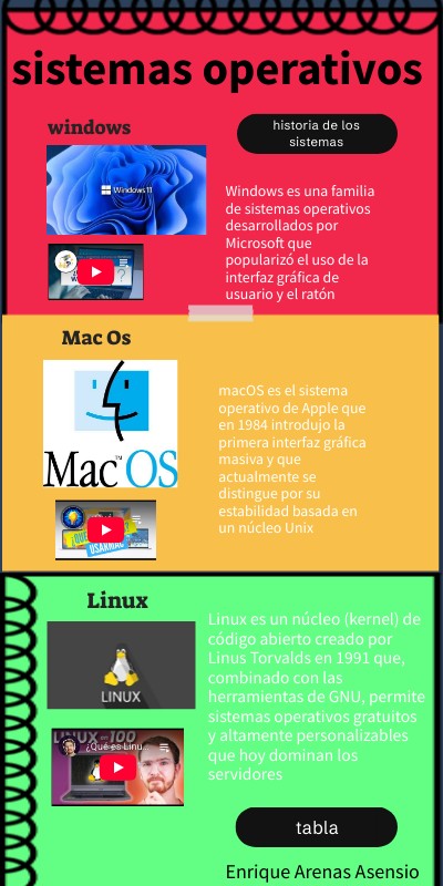 la historia de los sistemas operativos se divide en cuatro generaciones: la primera (1945-1955) carecía de sistema operativo y se programaba directamente en el hardware; la segunda (1955-1965) introdujo el procesamiento por lotes para mejorar la eficiencia; la tercera (1965-1980) marcó un hito con la multiprogramación, el tiempo compartido y el nacimiento de Unix; y la cuarta (desde 1980) se define por el auge de las computadoras personales con interfaces gráficas como Windows y MacOS, sumado a la importancia del software libre con GNU/Linux y la evolución hacia sistemas móviles y en la nube.