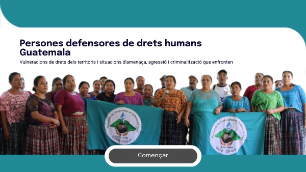 Des de l'any 2017, , en col·laboració amb la seva sòcia local i amb el suport de l' i l' , acompanya, a través de diferents projectes, a comunitats pageses i indígenes dels pobles Ixil, Maia Q’eqchi’, Maia Q’anjob‘al, Maia Poqomchi’ i Maia Chortí, així com a joves de barris urbans en els departaments d'Alta Verapaz, Huehuetenango, San Marcos, Santa Rosa, Guatemala, Petén i El Quiché, zones de Guatemala on es registren de manera sistemàtica vulneracions de drets territorials, amenaces i processos de criminalització. Aquest document té per objecte visibilitzar les vulneracions de drets dels territoris i les situacions d'amenaça, agressió i criminalització que enfronten les persones defensores, com a estratègia de suport a la seva protecció col·lectiva. Així mateix, cerca sensibilitzar a la ciutadania global sobre la situació a la qual s'enfronten.