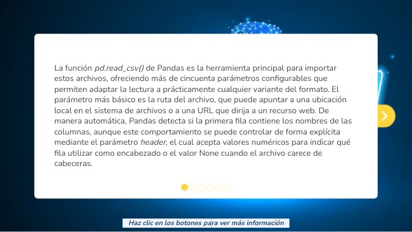 Al usar df.to_csv('datos.csv.gz',compression = 'gzip'), se genera un archivo comprimido que Pandas puede leer después directamente sin necesidad de una descompresión manual previa. Las opciones disponibles incluyen gzip, bz2, zip y xz, cada una con diferentes capacidades de reducción y velocidades de procesamiento. Finalmente, para reportes destinados a usuarios no técnicos, la configuración float_format = '%.2f' limita los decimales en números flotantes, mejorando la legibilidad al evitar precisiones excesivas que no aportan valor a un análisis ejecutivo.