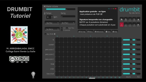 Application gratuite - en ligne mais présence de PUB ($) Signature temporelle non changeable MOTIF sur 4 pulsations (binaires) Chaque pulsation est subdivisée en 4 pas