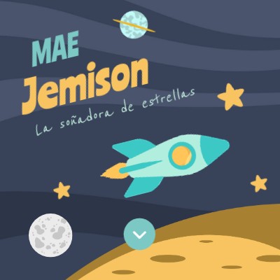 Mae Jemison soñaba con viajar al espacio desde que era pequeña. Le gustaba leer, aprender y observar las estrellas. Primero estudió para ser médica, más tarde se convirtió en astronauta y fue la primera mujer negra en viajar al espacio. Su viaje fue tan importante que recibió premios y reconocimientos en todo el mundo. Después de su misión, siguió trabajando para que más niñas se interesaran por la ciencia y los estudios científicos. Mae nos enseña que los sueños no tienen límites y que con esfuerzo podemos llegar muy lejos.