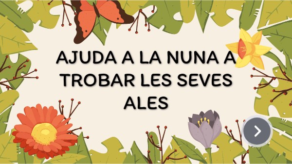 Hola, petits exploradors i exploradores! Avui us espera una aventura molt especial! La Nuna ĂŠs una papallona molt bonica i alegre đŚ, però aquest matĂ, quan sâha despertat, ha vist que⌠les seves ales han desaparegut! Oh, no! Sense les seves ales, la Nuna no pot volar ni jugar amb els seus amics del bosc. Per sort, la Nuna sap que vosaltres sou molt valents i valentes i us ha demanat ajuda. Al llarg del camĂ haureu de passar unes proves divertides, QUE US DONARAN PETITES PISTES PER DESXIFRAR EL CANDAU. Si aconseguiu superar totes les proves, trobareu les ales de la Nuna i ella podrĂ tornar a volar feliç. Esteu preparats i preparades per començar lâaventura?