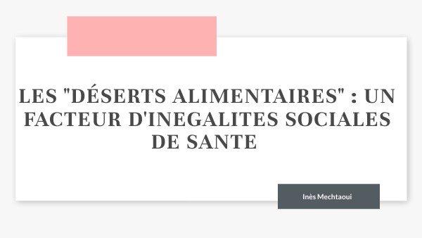 I - Les déserts alimentaires : un déterminant social de la santé II - Les effets des déserts alimentaires sur la santé des populations III - Limites du concept et enjeux de politiques publiques