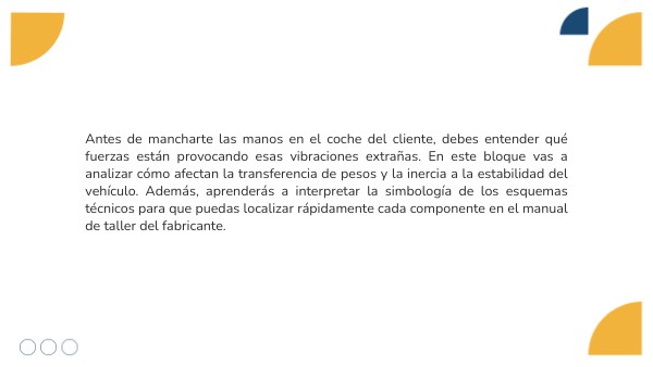 Antes de mancharte las manos en el coche del cliente, debes entender qué fuerzas están provocando esas vibraciones extrañas. En este bloque vas a analizar cómo afectan la transferencia de pesos y la inercia a la estabilidad del vehículo. Además, aprenderás a interpretar la simbología de los esquemas técnicos para que puedas localizar rápidamente cada componente en el manual de taller del fabricante.