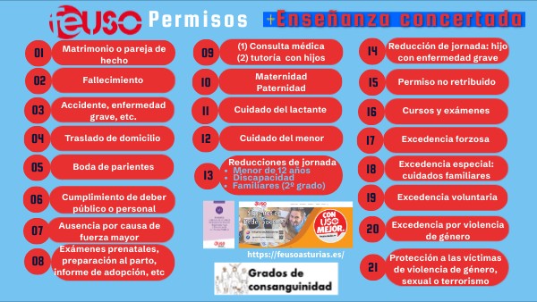- Cuidado del cónyuge o pareja de hecho, familiar hasta el 2º grado de consanguinidad o afinidad, incluido el familiar consanguíneo de la pareja de hecho.