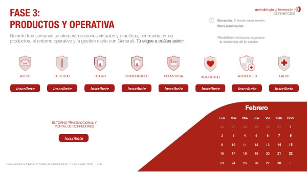 Durante tres semanas se ofrecerán sesiones virtuales y prácticas, centradas en los productos, el entorno operativo y la gestión diaria con Generali. Tú eliges a cuáles asistir.