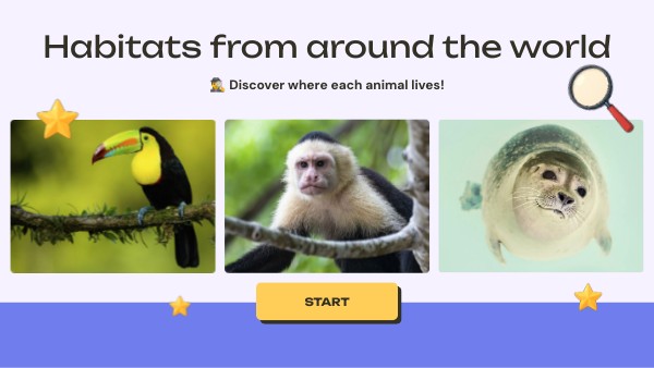 Every animal adapts to their habitat! On this game you will learn the different animals and where they live.