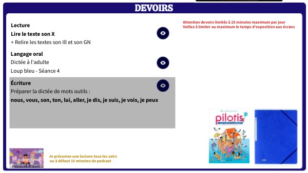 Attention devoirs limités à 25 minutes maximum par jour Veillez à limiter au maximum le temps d'exposition aux écrans