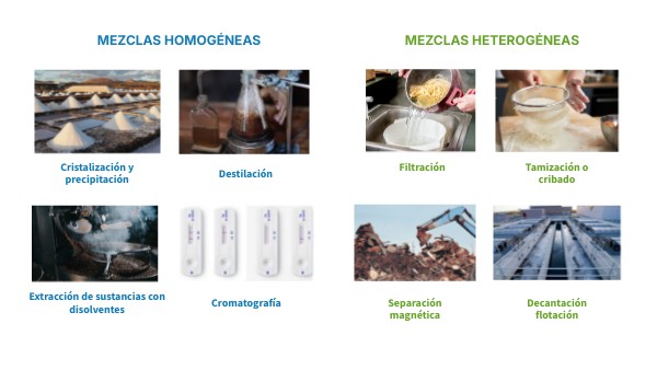 Mezclas con algún componente ferromagnético, el componente ferromagnético es atraído por un imán y separado del resto. Ej: Separación de metales entre basura.