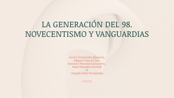 LA GENERACIÓN DEL 98. NOVECENTISMO Y VANGUARDIAS