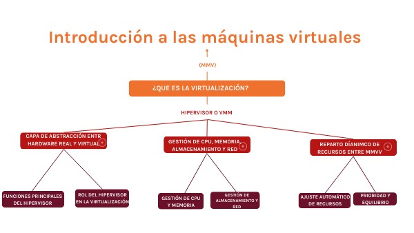 El hipervisor o VMM es la capa de software que se sitúa entre el hardware físico y las máquinas virtuales. Actúa como un intermediario que gestiona y reparte dinámicamente los recursos del sistema: CPU, memoria, almacenamiento y red, permitiendo que varias máquinas virtuales se ejecuten de forma simultánea y eficiente en un mismo equipo.