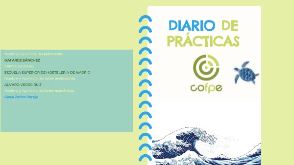 Nombrey Apellidos del estudiante: IXAI ARCE SÁNCHEZ Centro asignado: ESCUELA SUPERIOR DE HOSTELERÍA DE MADRIDNombre y Apellidos del tutor profesional: ALVARO VERDÚ RUIZNombre y Apellidos del tutor académico:Gema Zurita Parejo