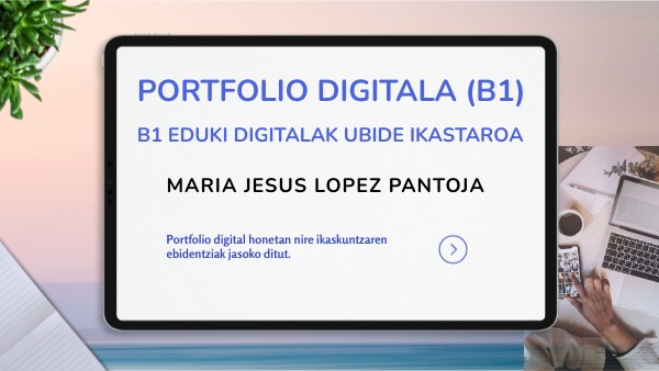 Donostiako Hizkuntza Eskola Ofizialean egiten dut lan. Euskara irakaslea naiz. Portfolio digital honetan, irakasleen konpetentzia digitala garatzeko B1 Eduki digitalak ubide ikastaroan eskatutako lanak eta atazak jasoko dira. Nire lorpenen bilduma bat izango da, ikastaroan zehar ikasi dudana erakutsiko duena.