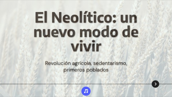 El Neolítico es el periodo de la Prehistoria que comenzó alrededor del 10.000 a. C. y se caracterizó por un gran cambio en la forma de vida de los seres humanos: -Pasaron de ser nómadas a sedentarios -Empezaron a cultivar plantas -Se domesticaron los primeros animales Estos cambios transformaron su alimentación, su organización social y su relación con el entorno.