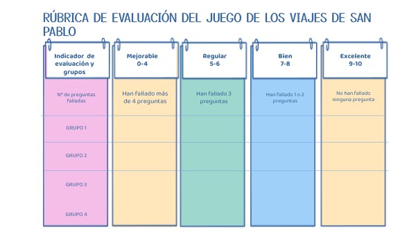 Rúbrica DE evaluación DEl juego de los viajes de san pablo