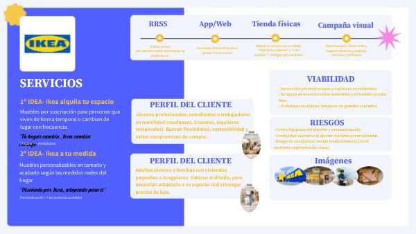 - Aprovecha infraestructuras y logísticas ya existentes.- Se apoya en el compromiso sostenible y el modelo circular Ikea. - Prototipos escalables (empezar en grandes ciudades)