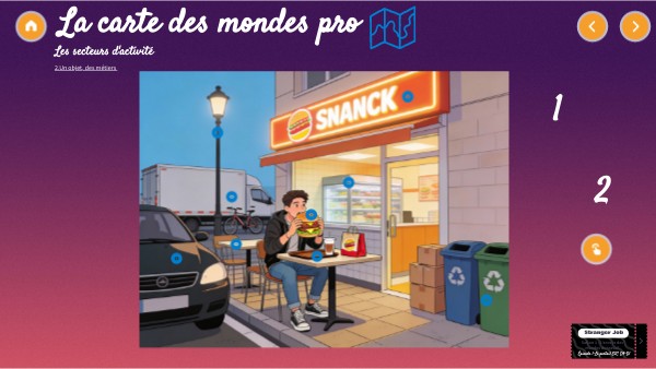 1. Produire les ingrédientsChamps, élevages, serres, usines de pain et de fromage.Métiers : ouvrier agricole, éleveur salarié, ouvrier agroalimentaire, boulanger industriel.2. Transformer et préparer Laver, couper, hacher, cuire, mélanger, former les steaks, cuire le pain, préparer les sauces, emballer.Métiers : opérateur de production, conducteur de ligne, agent de conditionnement, technicien qualité (contrôles).3. Transporter et stockerAmener tous les produits jusqu’au dépôt puis jusqu’au snack, en respectant la chaîne du froid.Métiers : préparateur de commandes, cariste, chauffeur‑livreur, agent de quai.4. Cuisiner et monter le burger au snackRecevoir les produits, les ranger, cuire la viande, toaster le pain, assembler le burger, ajouter les légumes et les sauces.Métiers : équipier polyvalent de restauration rapide, employé de cuisine, cuisinier.5. Servir le client et gérer les déchetsPrendre la commande, encaisser, donner le plateau, nettoyer la table, trier les emballages.Métiers : employé de salle / de restauration rapide, hôte de caisse, agent de propreté, agent de tri des déchets.