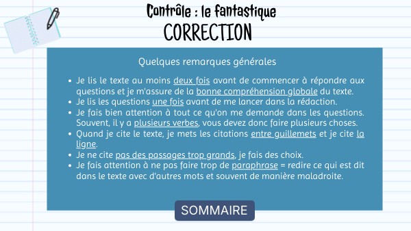 Je fais attention à ne pas faire trop de paraphrase = redire ce qui est dit dans le texte avec d'autres mots et souvent de manière maladroite.