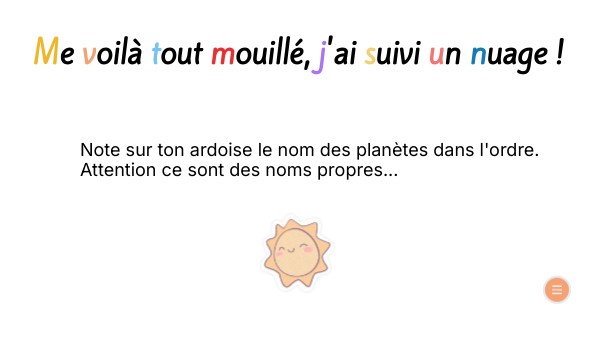 Note sur ton ardoise le nom des planètes dans l'ordre. Attention ce sont des noms propres...