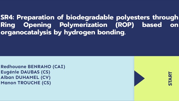SR4: Preparation of biodegradable polyesters through Ring Opening Polymerization (ROP) based on organocatalysis by hydrogen bonding.