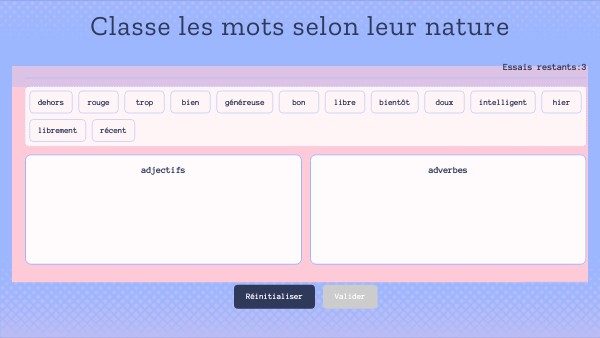Classe les mots selon leur nature