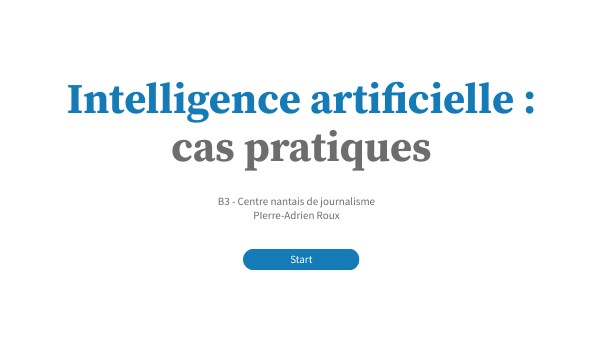Dans le Guide de l'IA des médias locaux édité par Ouest Medialab, vous trouverez 9 cas d'usage de l'IA dans l'information locale. Par groupe de 3, emparez-vous d'un des cas d'usage et présentez-le au reste de la classe. 15m de préparation / 5m de présentation. Vous devrez :