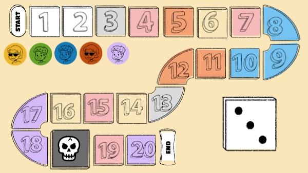 RETA A UNA PAREJA A QUE RESPONDA POR VOSOTROS, SI FALLAN… ELLOS Y VOSOTROS RETROCEDÉIS A LA SALIDA. SI ACIERTAN TIRÁIS DADOS DE NUEVO.
