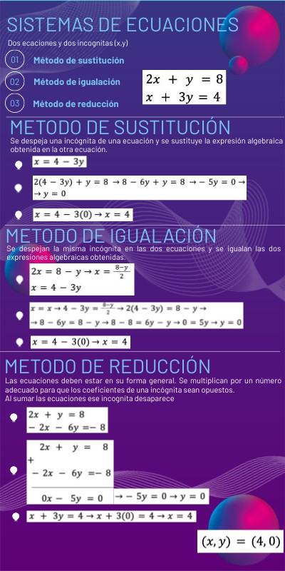 Se despeja una incógnita de una ecuación y se sustituye la expresión algebraica obtenida en la otra ecuación.