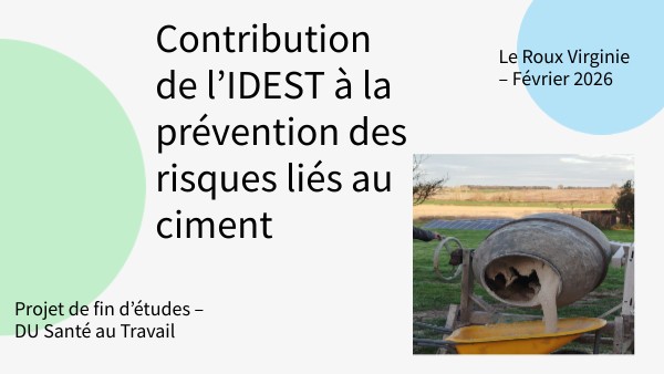 Comment l’IDEST peut-il intervenir pour sensibiliser les salariés et les employeurs à la méconnaissance des risques chimiques liés à l’exposition au ciment ? Et quelles actions de prévention adaptées mettre en place, afin de diminuer l’exposition à ces risques dans leurs activités professionnelles?