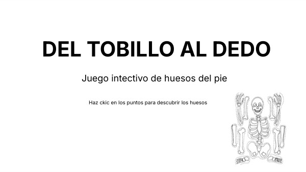 El recurso interactivo se ha deiseñado mediante la herrmaienta Genially, utilizando una imagen anatómica del imferior con puntos interactivos, a través de ellos , el alumnado identifica los hueso desde la tibia hasta las fanlanges del los pies, reconociendo sus nombre y su calsificación según el tipo de hueso de foma visual y dinámica
