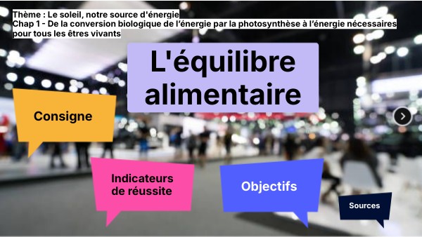 Thème : Le soleil, notre source d'énergie Chap 1 - De la conversion biologique de l’énergie par la photosynthèse à l’énergie nécessaires pour tous les êtres vivants