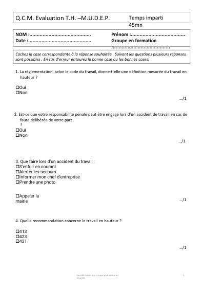 Q.C.M. Evaluation T.H. –M.U.D.E.P.