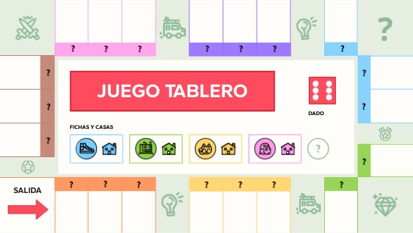 Cada jugador/a debe elegir un color: azul, verde, amarillo o rosa. Así obtiene una ficha para marcar su posición y 10 casas para indicar las propiedades que adquiere a lo largo del juego. Cada jugador debe coger la ficha de su color y colocarla en la casilla de salida. Para empezar a jugar, pincha sobre el dado y mueve tu ficha hasta la casilla que corresponda. En cada casilla debe haber una o varias preguntas. Si la aciertas, coloca una de tus casas en dicha casilla. ¡Enhorabuena, has conseguido una nueva propiedad! Casillas especiales: las casillas con iconos pueden contener sanciones como por ejemplo "El jugador paga impuestos de la luz: pierde 2 casas". ¡Acierta la pregunta para evitar la sanción! Ganará aquel jugador/a que tenga el mayor número de casas sobre el tablero una vez que todas las casillas estén ocupadas.