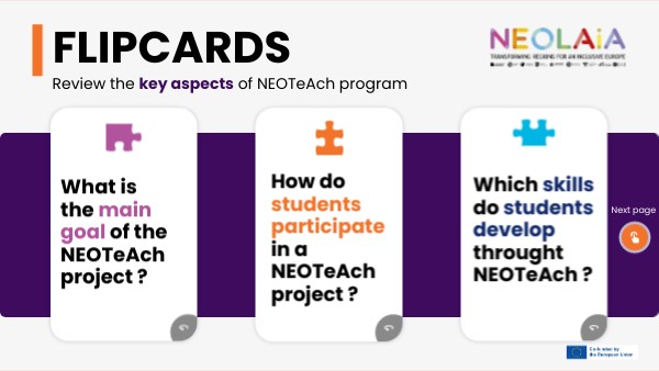 The main goal of NEOTeAch project is to promote innovative pedagogy by encouraging students to produce accessible scientific content, fostering active learning, international collaboration and cross-disciplinary skills.