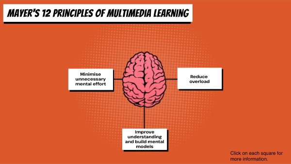 Students experience deeper learning from visuals and spoken words rather than text and words. Aim to strike a balance!