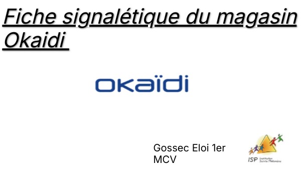 Durant ma pfmp en tant que vendeur chez okaidi un magasin français spécialisée dans les vétement pret a porter de l'enfance a l'adolecense (de 0 à 14 ans) madame Bambin ma tutrice me demande une fiche signaletique de l'entreprise avec les différent point que je vais vous presenter dans le plan ci dessous