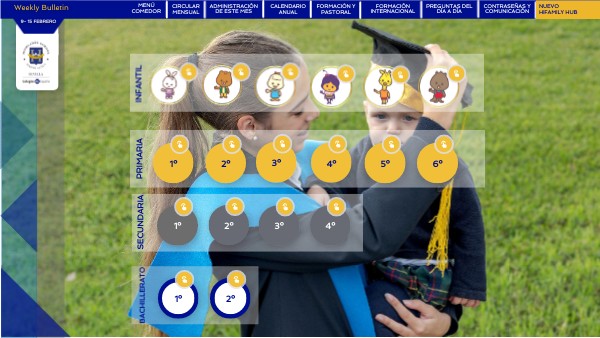 - Acceder al Weekly Bulletin, que es una agenda semanal con las actividades y eventos que afectan directamente a los padres de familia. El Weekly Bulletin se cuelga todos los viernes.