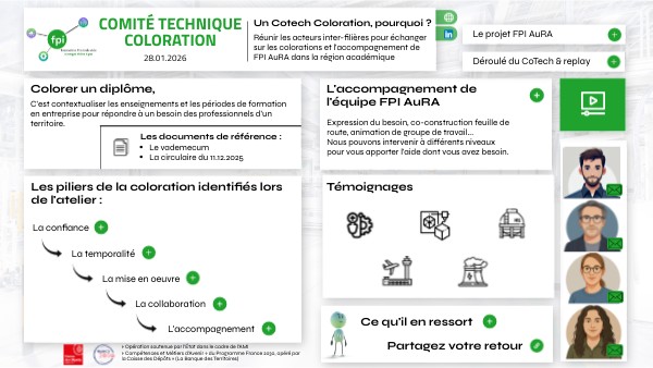 Réunir les acteurs inter-filières pour échanger sur les colorations et l'accompagnement de FPI AuRA dans la région académique