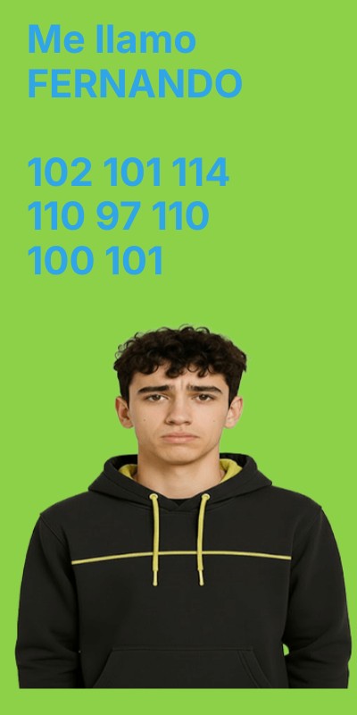 Me llamo FERNANDO 102 101 114 110 97 110 100 101